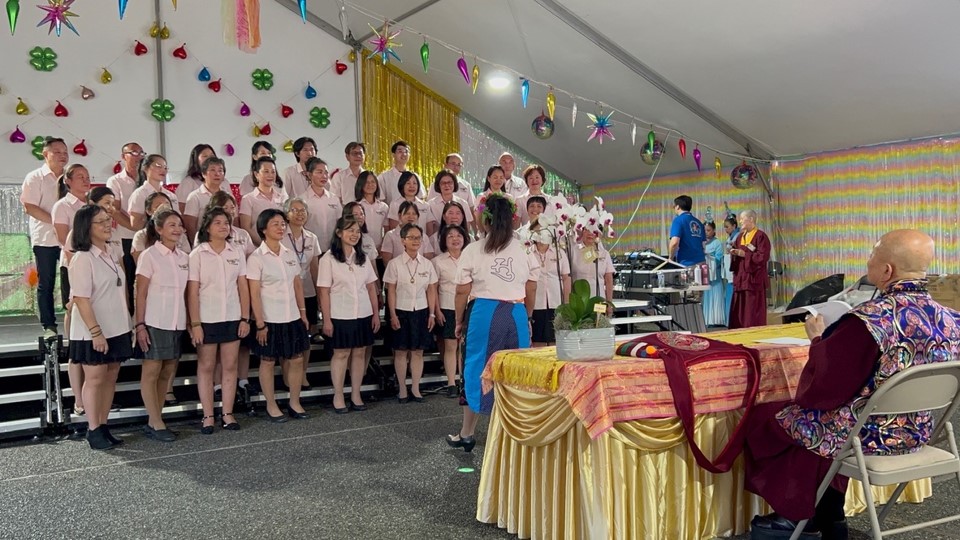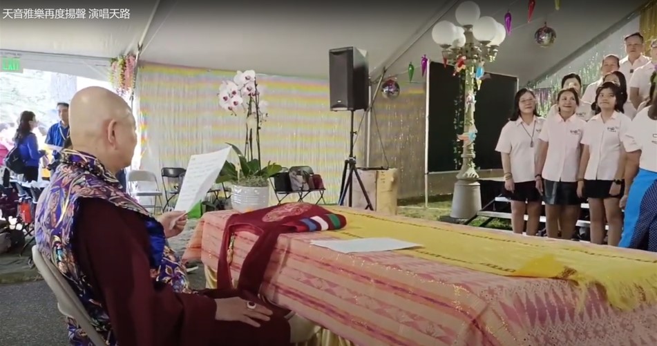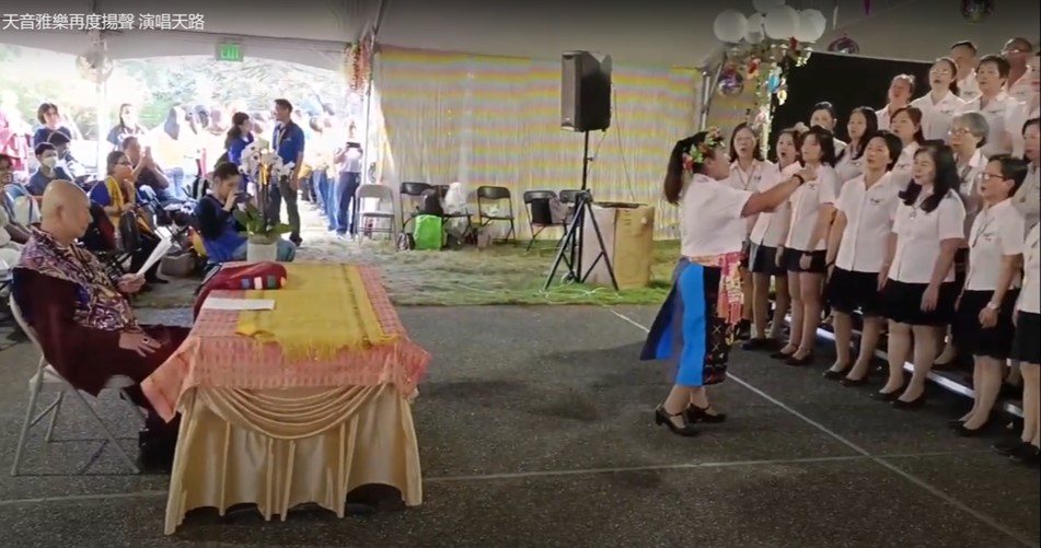 炎炎的驕陽抵擋不住“春天的雪”,悠揚的音符如似佛菩薩的愛花無窮的撒下人間。2023年九月十日秋季大法會,來自世界各地的天音合唱團團員們又再度聚首、演唱:“春天的雪”和“天路”兩首曲子。 師尊蓮生活佛微笑地凝眸弟子,隨著歌聲的飄揚周遭彷彿皆沈浸於妙音法界中,聽者歌者你我彷彿都忘卻一切。