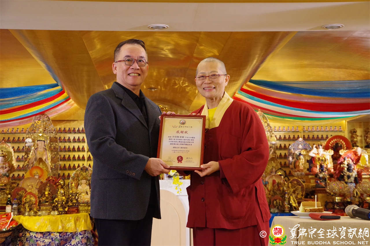 蓮悅上師也頒發感謝狀及禮物給方老師。