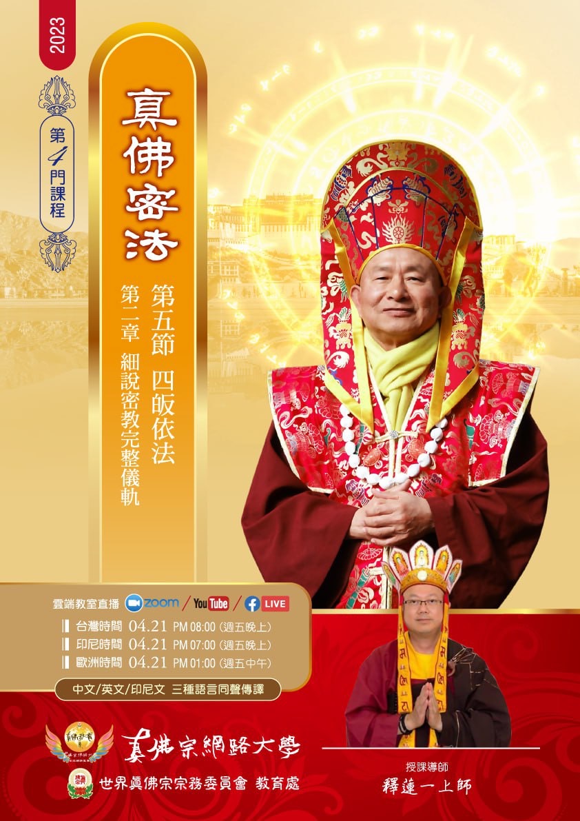 本週五《真佛密法》將學習第二章 細說密教完整儀軌之第五節四皈依法。在這一節中佛學知識淵博的授課導師蓮一上師將為我們深度解析: