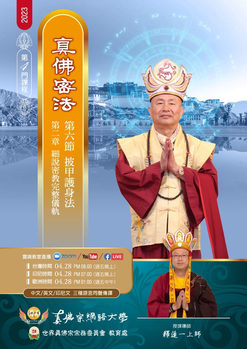 本週五《真佛密法》將學習第二章 細說密教完整儀軌之第六節披甲護身法。 在這一節中佛學知識淵博的授課導師蓮一上師將為我們深度解析: