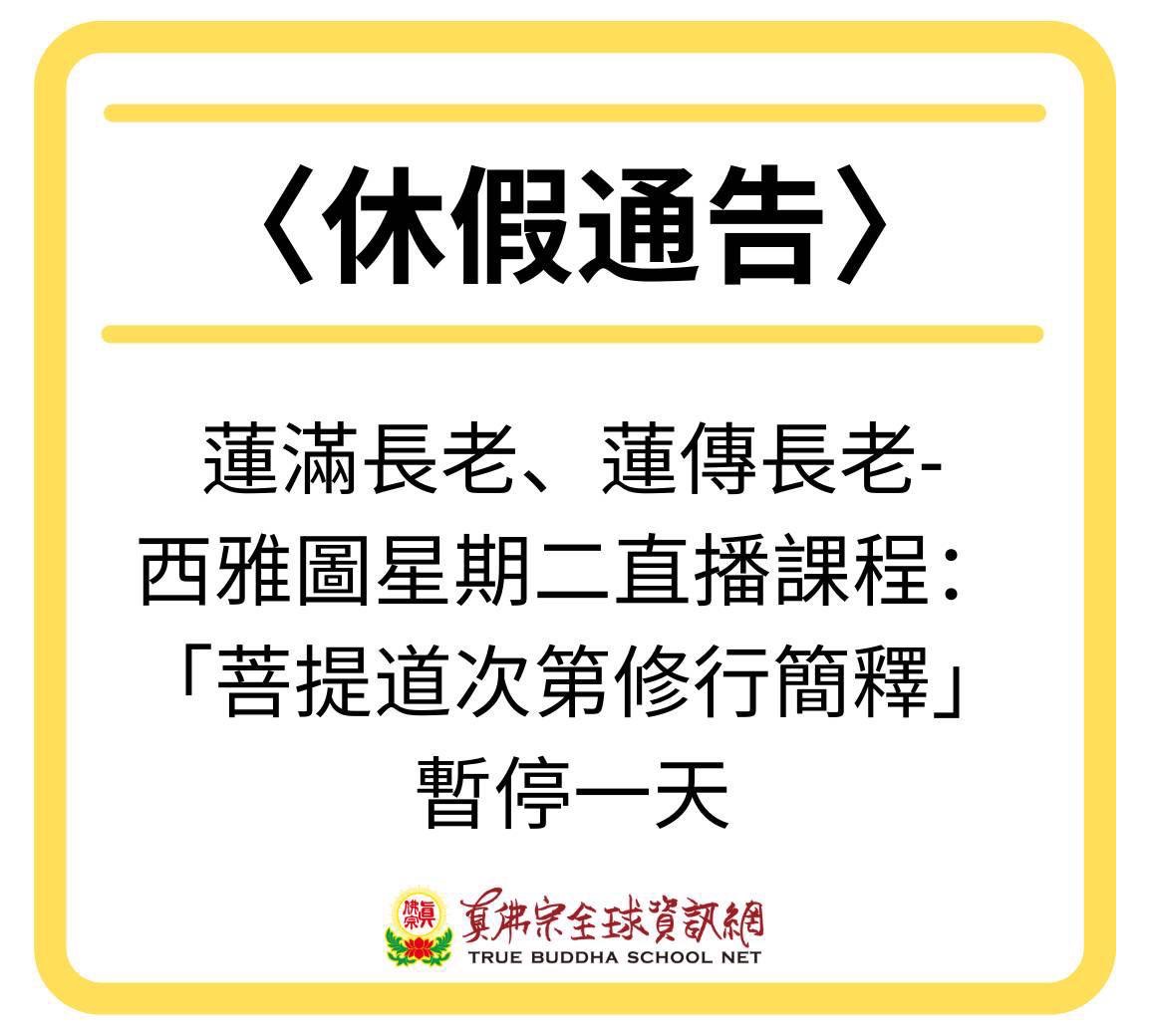 本週 菩提道次第修行簡釋 暫停一次,敬請見諒。