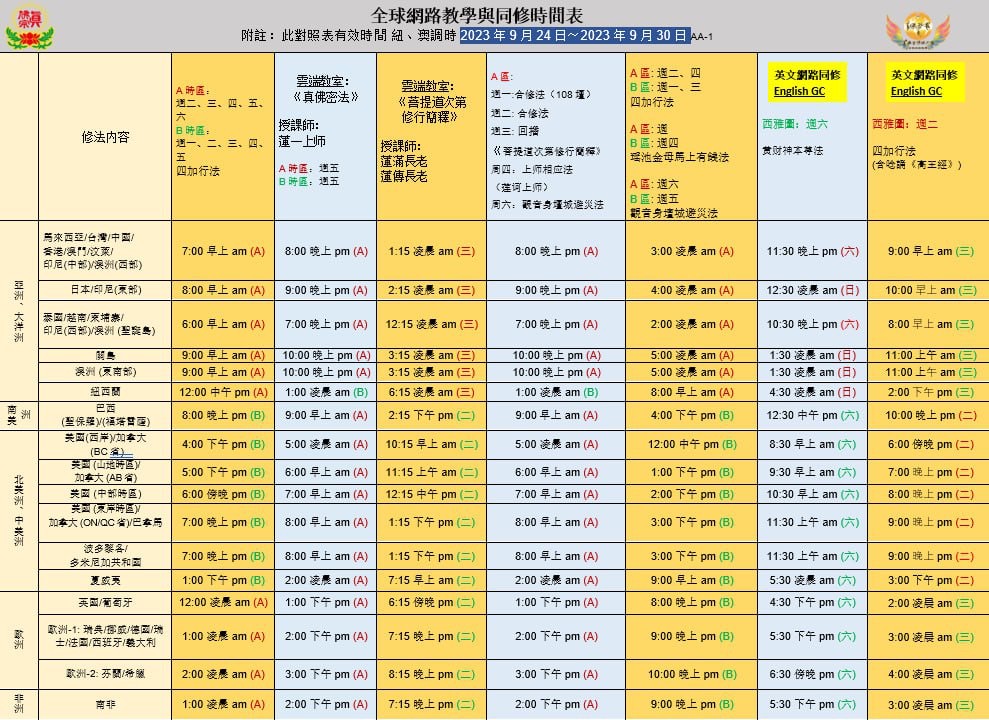 紐西蘭調時,宗委會教育處同修與課程時間表2023-09-24更換