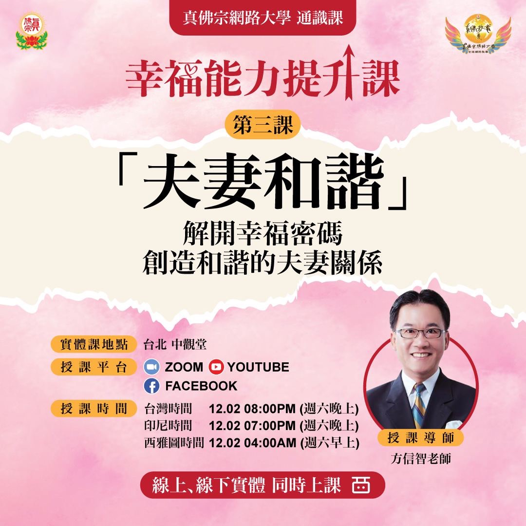 【真佛網絡大學《幸福能力提升課》第三課:「夫妻和諧」解開幸福密碼】