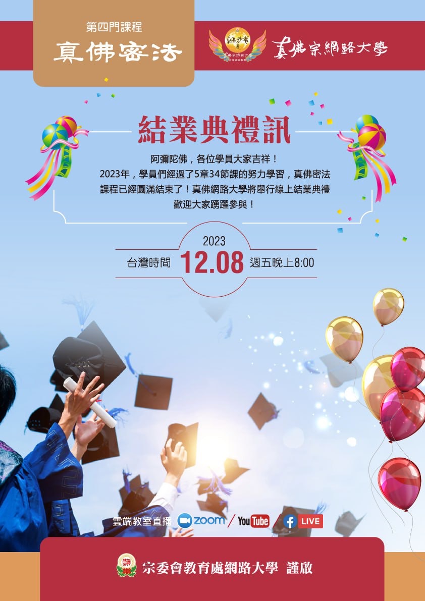 【真佛網路大學第四門課程《真佛密法》結業典禮本週五雲端開幕】