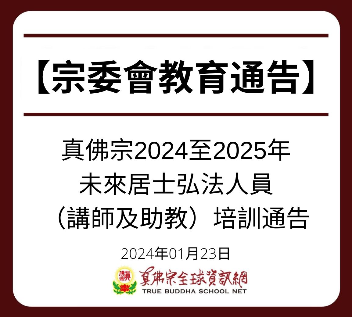 真佛宗2024至2025年未來居士弘法人員(講師及助教)培訓通告