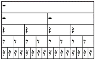 4. 一个八分休止符相等于两个十六分休止符,一小节若以四分休止符当一拍,即等于两个十六分休止符相加,四分之一拍加四分之一拍共休息半拍。