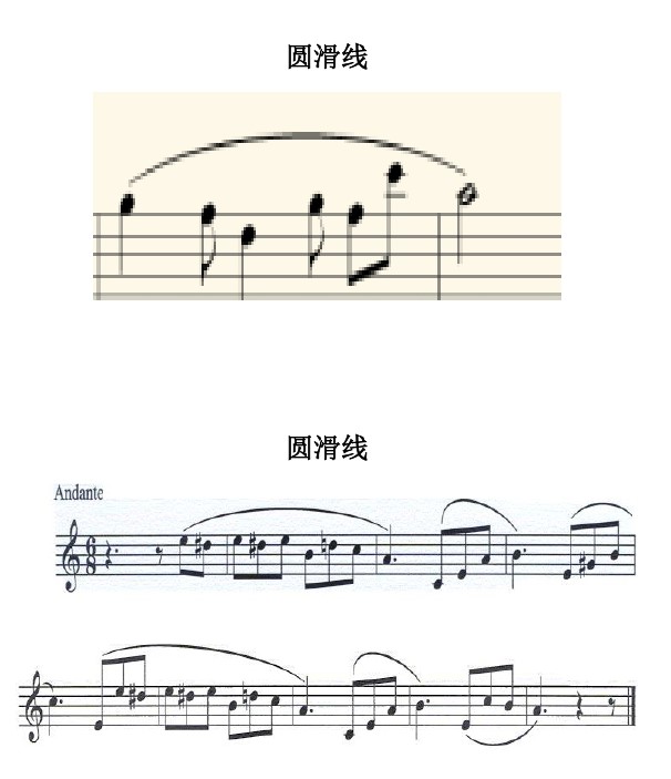 何谓圆滑线?用拋物线连接多个(一般是两个以上)相同或是不同音高的音符,使之唱奏起来圆滑,有别于一般听起来的分开独立感,让旋律更具有线性的美感和柔软度,这样的线条称之为圆滑线,圆滑线不仅是以拋物线连接两个或两个以上,相同或是不同音高的音符,也可连接多个小节,使曲目于小节与小节间流畅且圆滑的唱诵或弹奏。