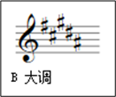 B大调,其音阶以 Ti 为主音,排列顺序为全全半全全全半,即音阶为 Ti-升Do-升Re-Mi-升Fa-升So-升La-Ti,而 Ti 到 升Do 全音,升Do 到 升Re 全音,升Re 到 Mi 半音, Mi 到 升Fa 全音,升Fa 到 升So 全音,升So 到 升La 全音,升La 到 Ti 半音,其中有五个升记号,升Do,升Re,升Fa,升So及升La。
