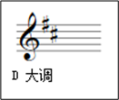 D大调,其音阶以 Re 为主音,排列顺序为全全半全全全半,即音阶为 Re-Mi-升Fa-So-La-Ti-升Do-Re,Re 到 Mi 全音,Mi 到 升Fa 全音,升Fa 到 So 半音,So 到 La 全音,La 到 Ti 全音,Ti 到 升Do 全音,升Do到 Re半音,其中有二个升记号,升Fa及升Do。